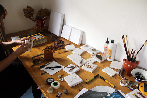 We worked independently in our own studios, developing images and objects -as well as a relationship- to the environment of the Moinhos do Dão.
